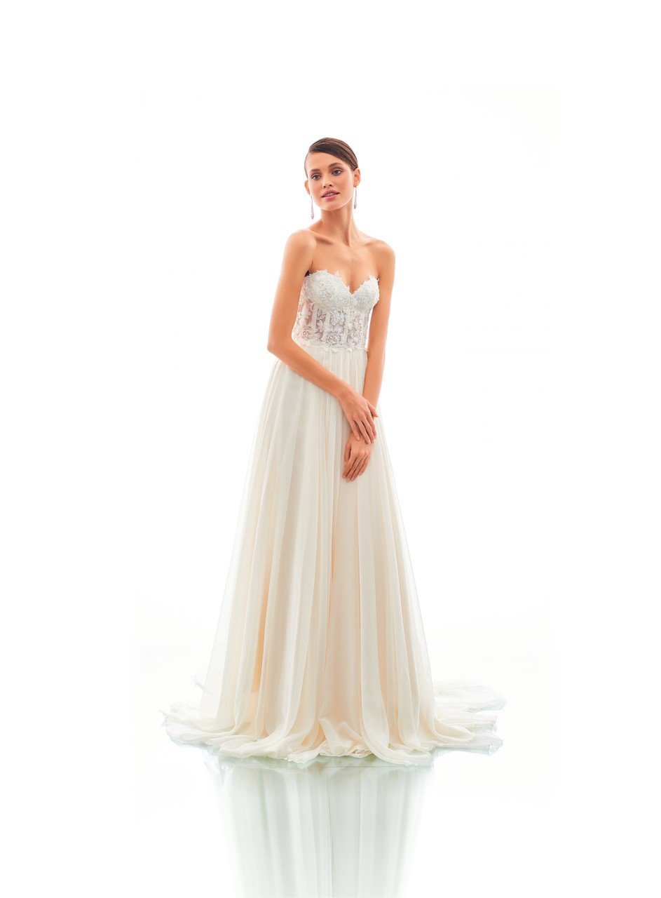 Dantel Beden Transparan Straplez Gelinlik