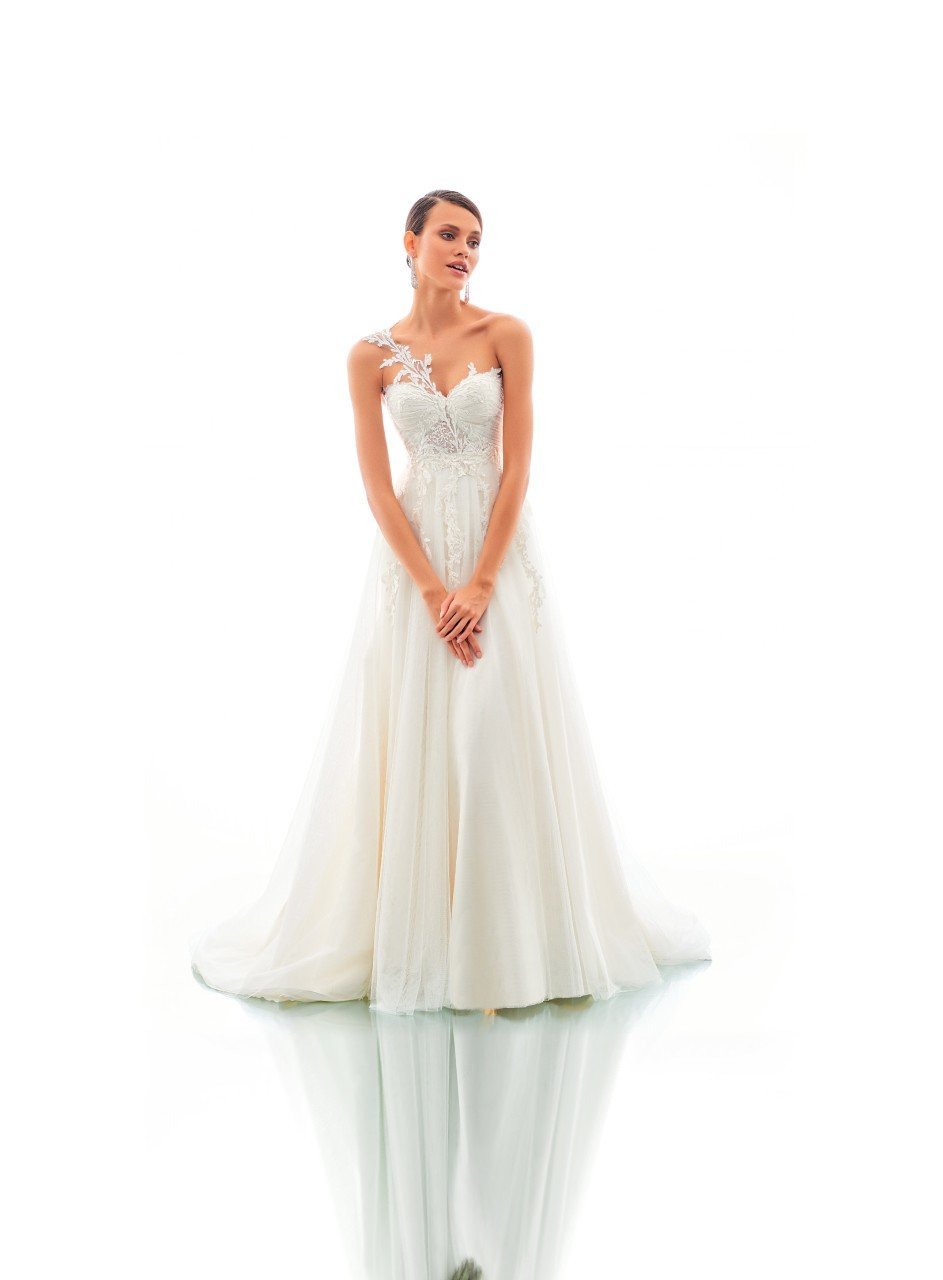 Drape ve Dantel Üst Dizayn Tek Askılı Gelinlik