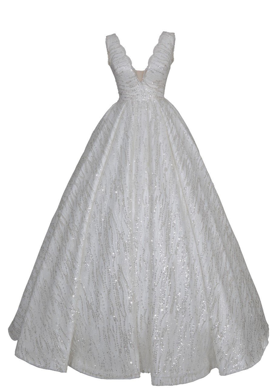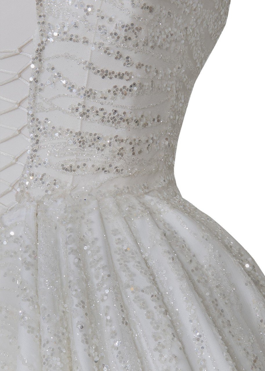 Komple Pullu ve Simli Kabarık Gelinlik
