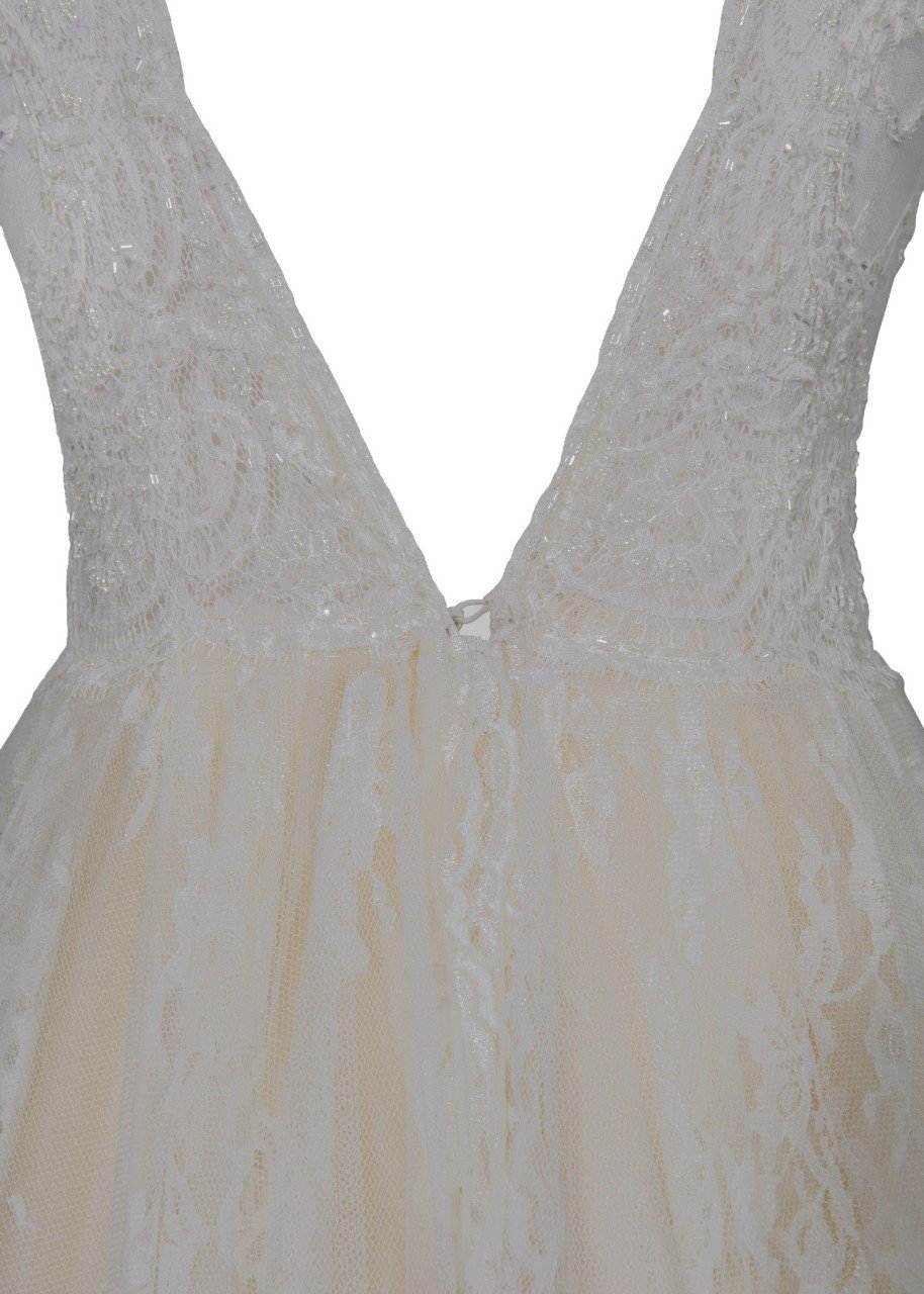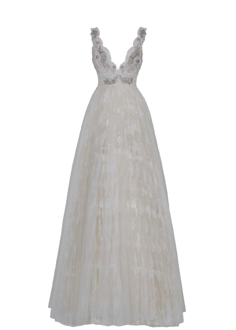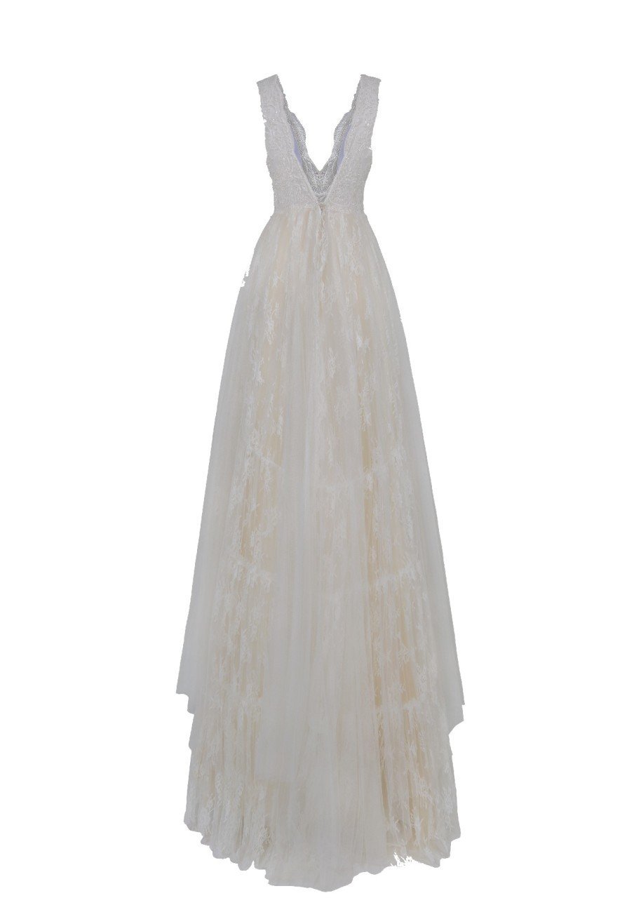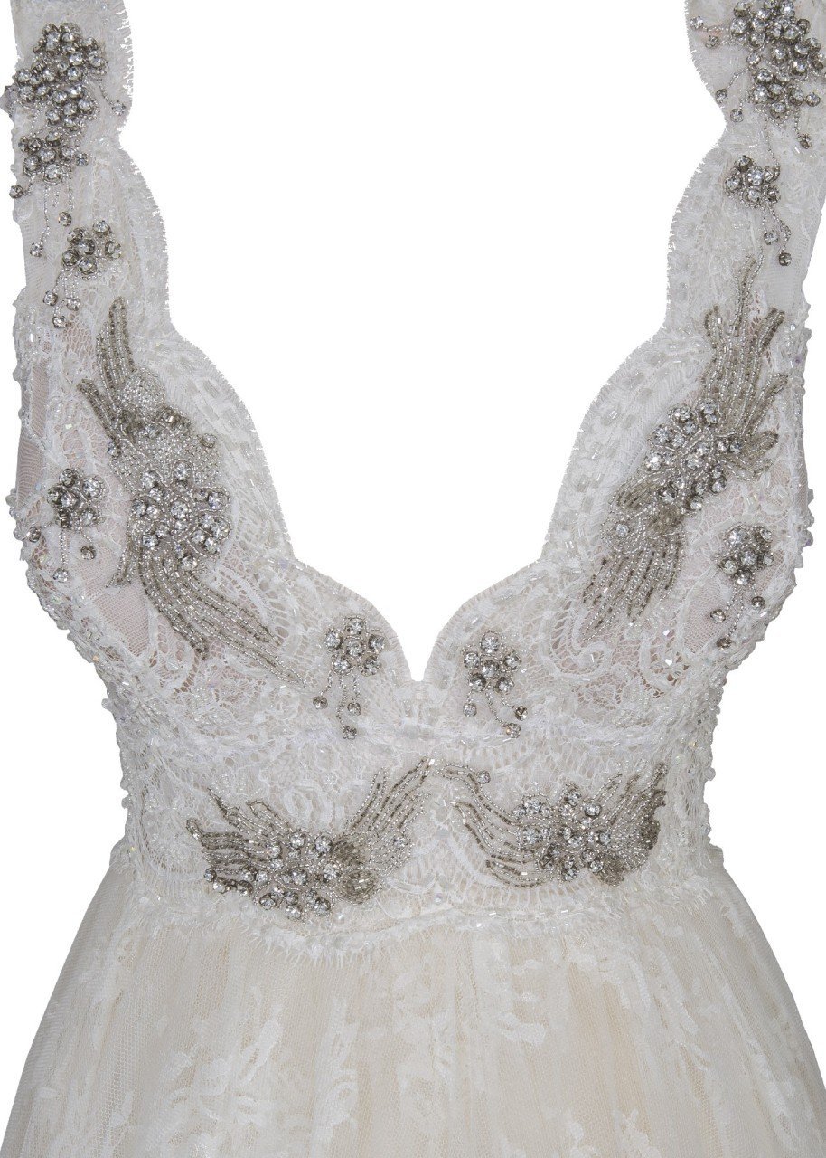 Swarovski Taş ve Dantel Detaylı V Yaka Gelinlik