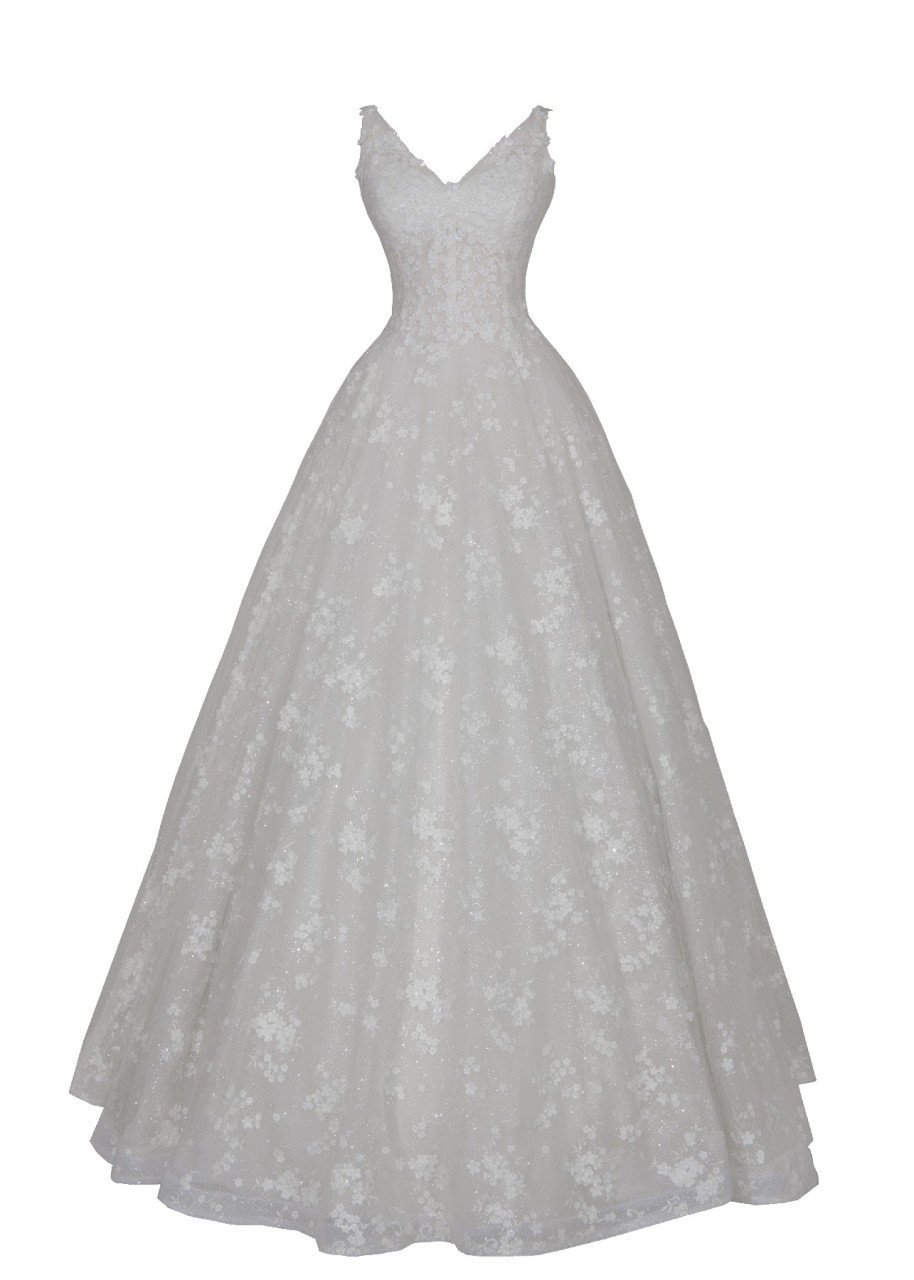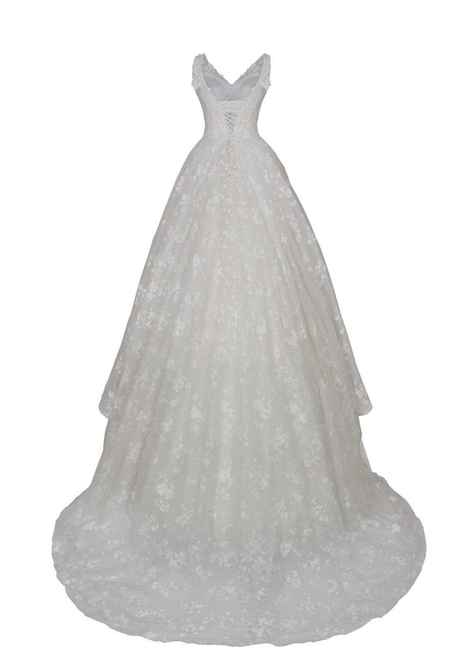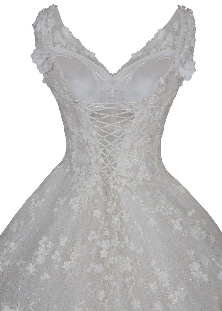 Üç Boyutlu Çiçek Detaylı A Kesim Gelinlik