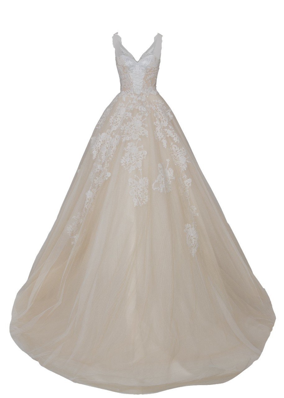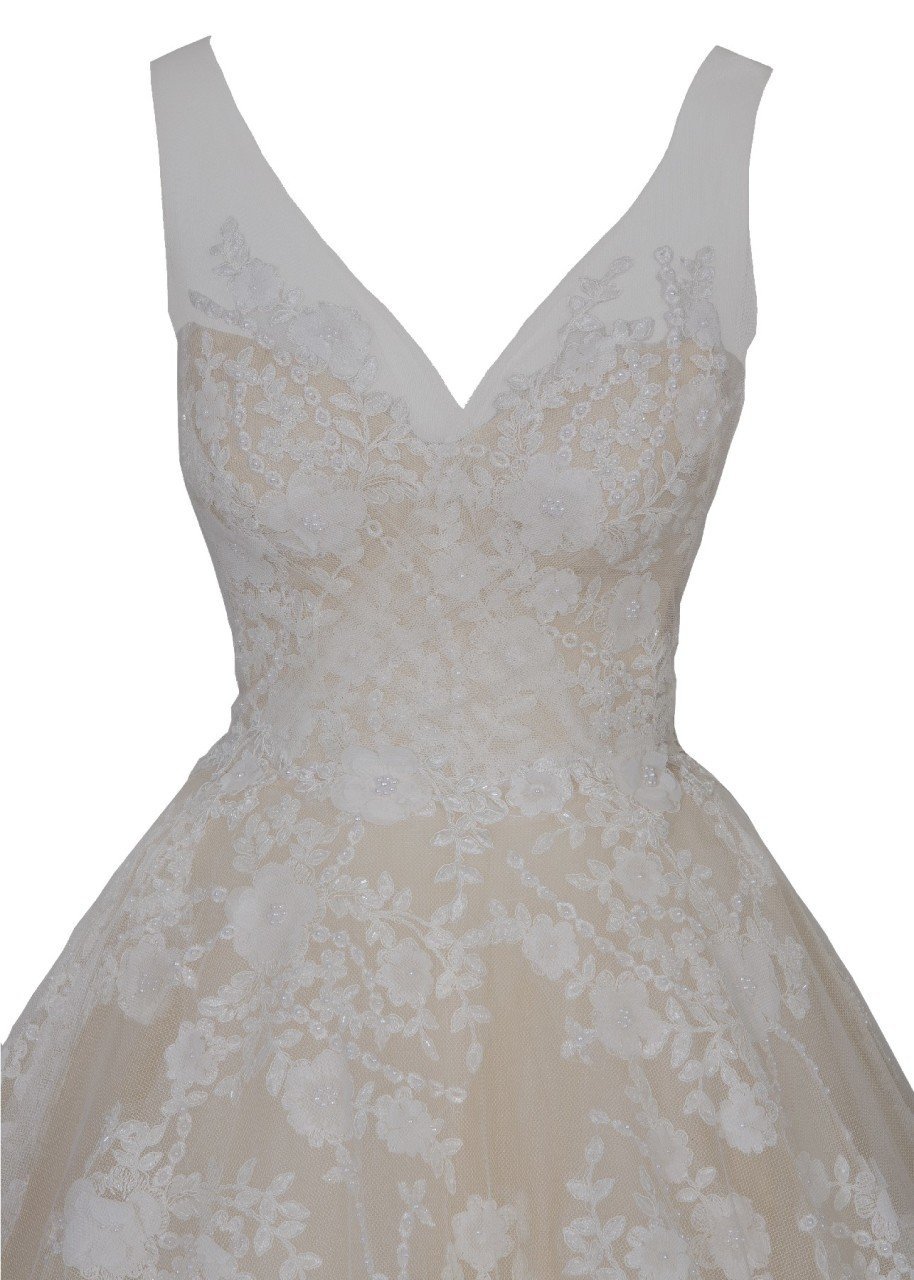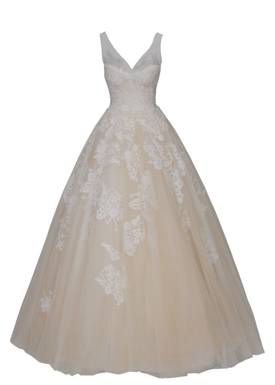 Üç Boyutlu Dantel Detaylı Kabarık A Kesim Gelinlik