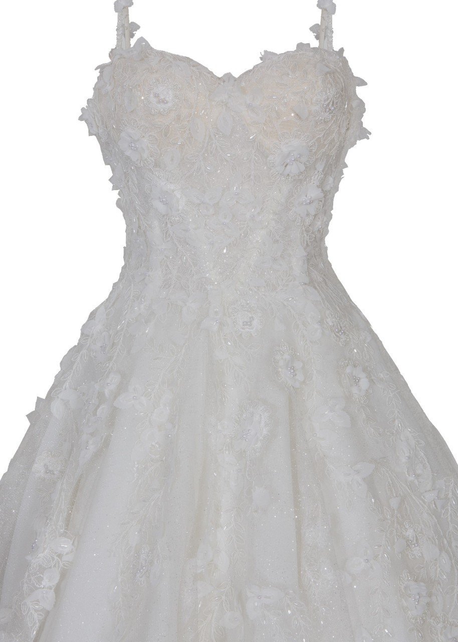 Üç Boyutlu Dantel ve Transparan Detay A Kesim Gelinlik